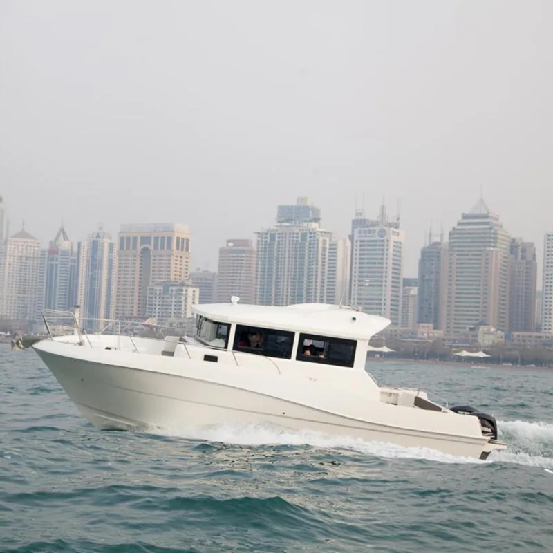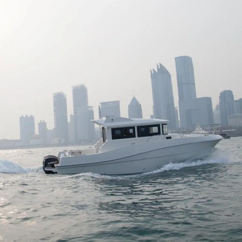 Ладвада®9,8м фиберглас оффсхоре риболовни брод Хулл Доња зрачена јелична полиуретанска структура без дрвене кобилице, технологије за убризгавање вакуумског ињекције. Овај дизајн осигурава лагано труп, сигурност, брзину и економичност горива. Са пространим унутрашњошћу, кабина је опремљена луксузним салом и купатилом. Лако је лансирати и вући се назад, Лавада®Одијело риболова за риболов и употребу као радни брод за спашавање ватре.